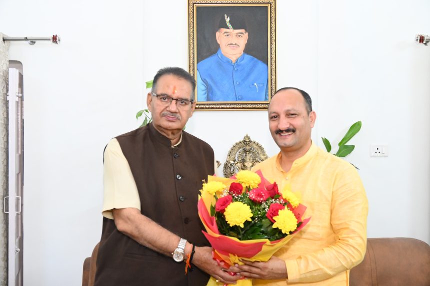 प्रदेश के कृषि मंत्री गणेश जोशी से आज उनके शासकीय आवास पर उत्तरकाशी के नव निर्वाचित जिला पंचायत अध्यक्ष रमेश चौहान ने भेंट की। इस दौरान मंत्री जोशी ने रमेश चौहान को जिला पंचायत अध्यक्ष निर्वाचित होने पर बधाई देते हुए उनके सफल कार्यकाल की शुभकामनाएं दीं।