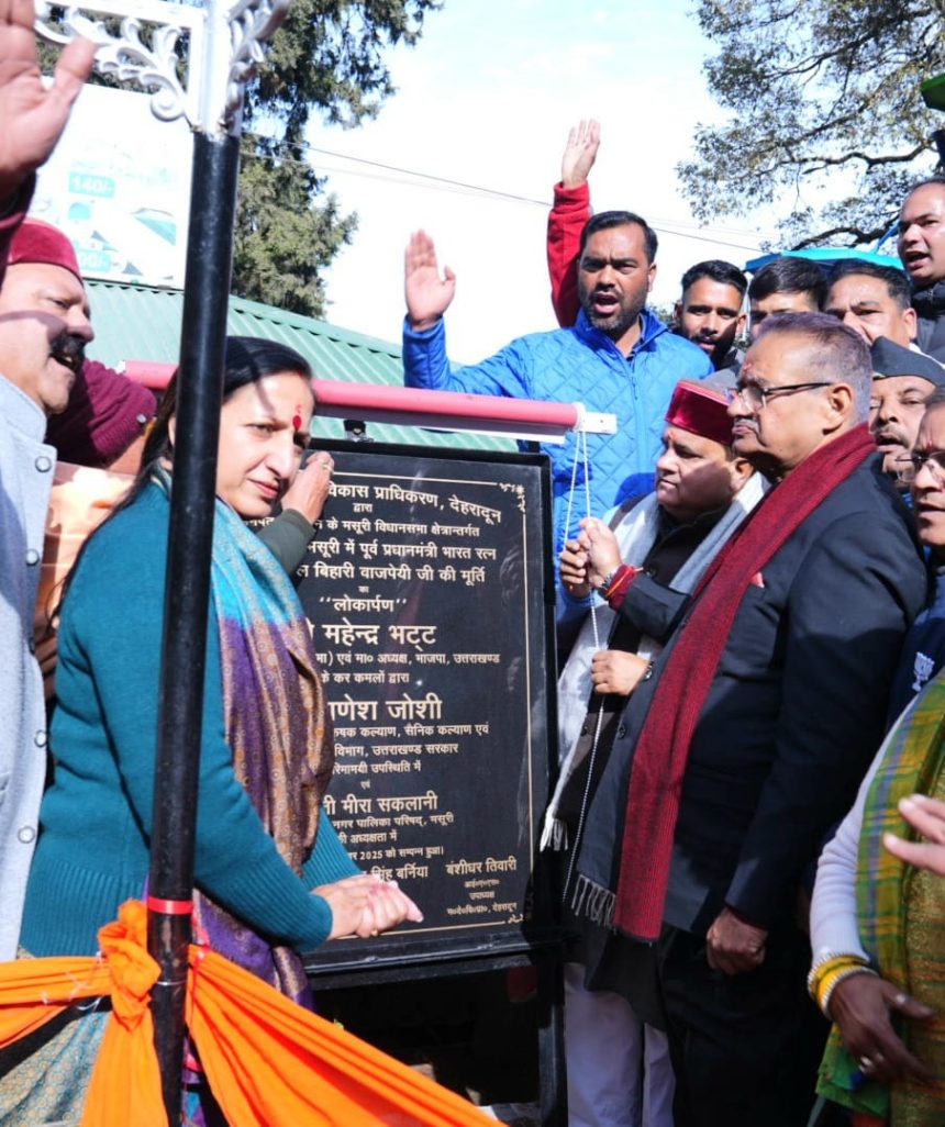 कैबिनेट मंत्री गणेश जोशी ने आज मसूरी स्थित अटल उद्यान में भाजपा प्रदेश अध्यक्ष एवं राज्यसभा सांसद महेंद्र भट्ट की उपस्थिति में देश के पूर्व प्रधानमंत्री स्व. अटल बिहारी वाजपेयी की मूर्ति का विधिवत लोकार्पण किया।
