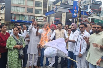 जॉर्ज एवरेस्ट पार्क आवंटन घोटाले के खिलाफ कांग्रेस ने प्रदेश भर में प्रदर्शन कर राज्य सरकार का फूंका पुतला