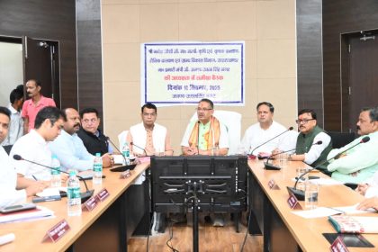 रुद्रपुर में जनपद के विभिन्न विभागों के जिला स्तरीय अधिकारियों की समीक्षा करते कैबिनेट मंत्री गणेश जोशी